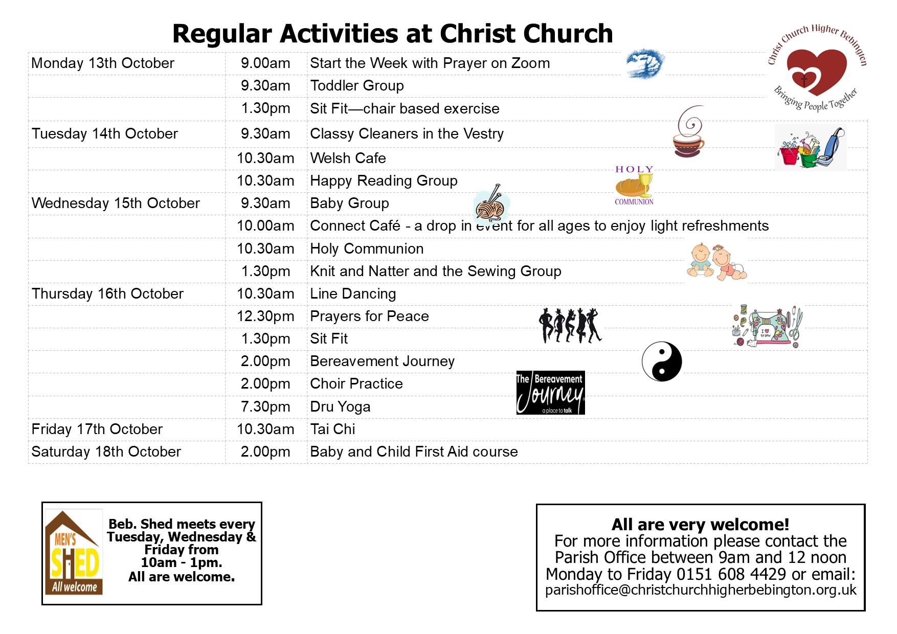 If you’re interested in attending any of the above groups and events and would like further information then please contact the Parish Office on 0151 608 4429.