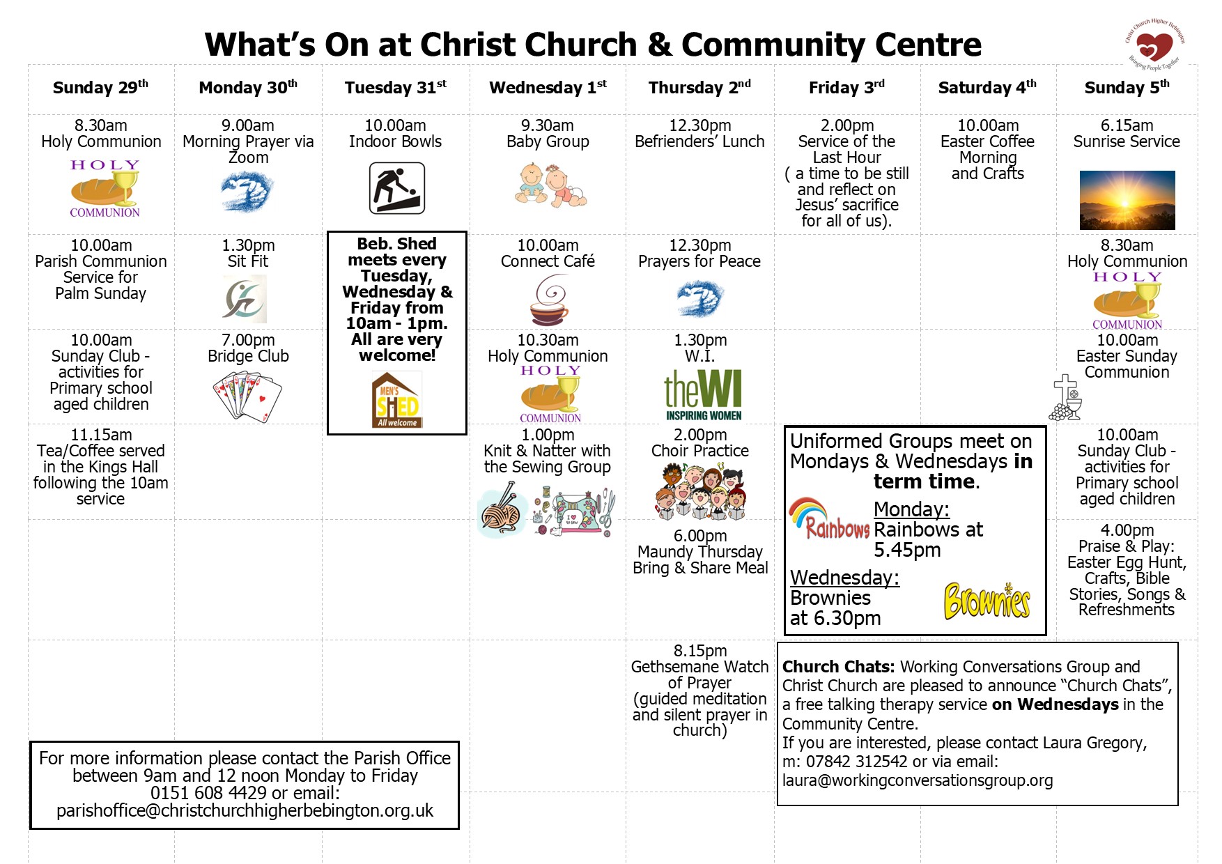 A two course hot meal, followed by tea & coffee. £7 to be payed at point of booking, limited places. All are welcome. Contact Parish Office on 608 4429 to secure place